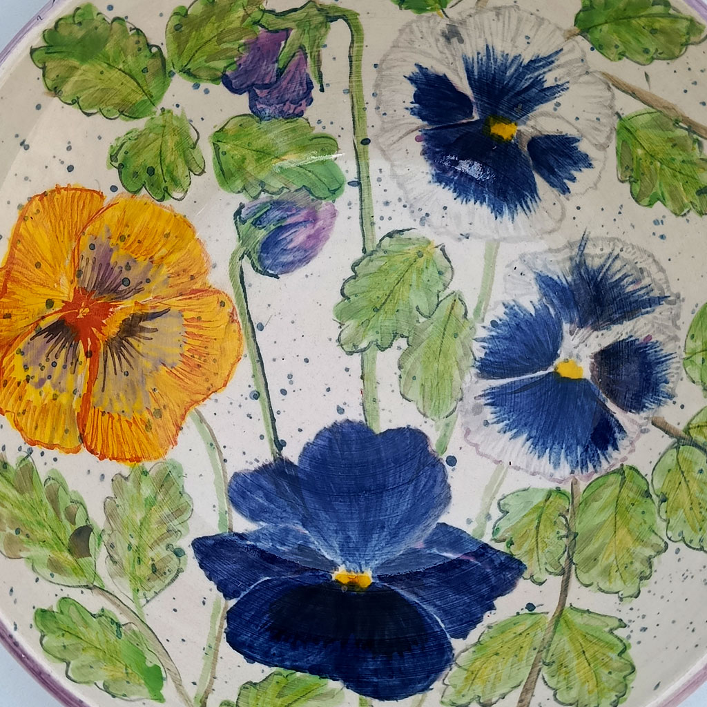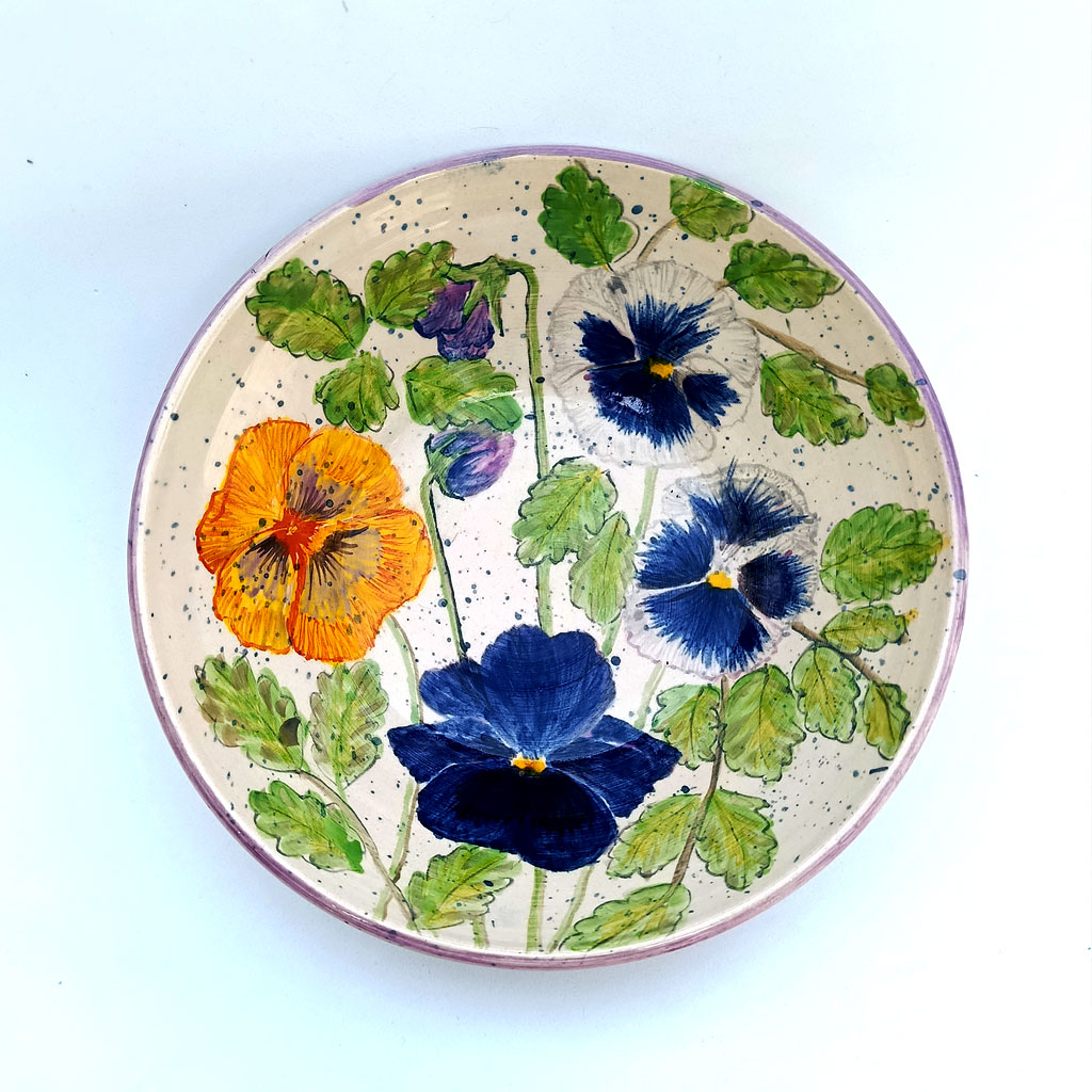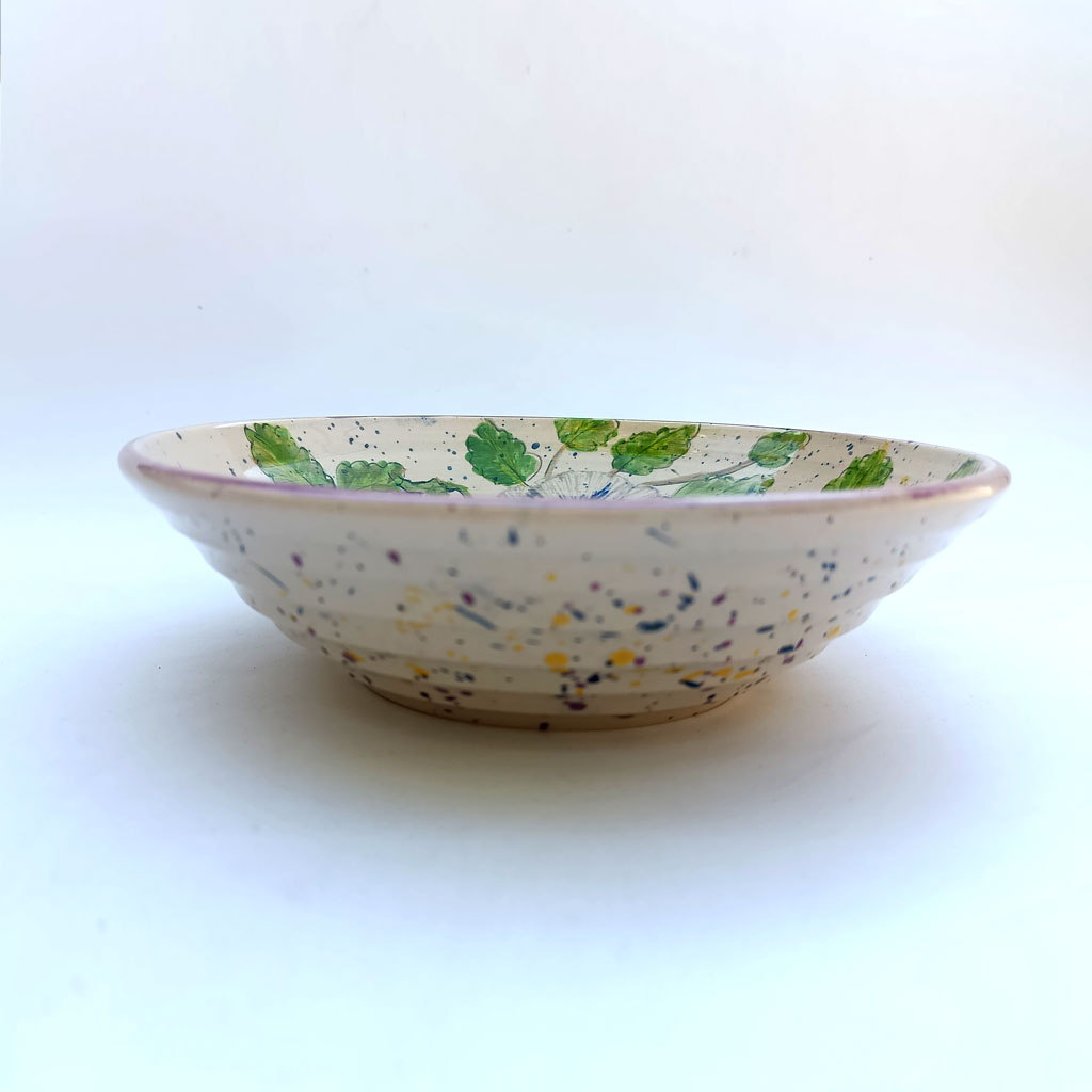 Pieza realizada a mano y torno en gres, pintada a mano.