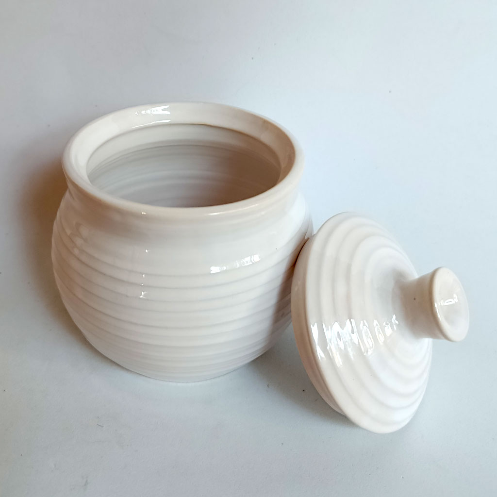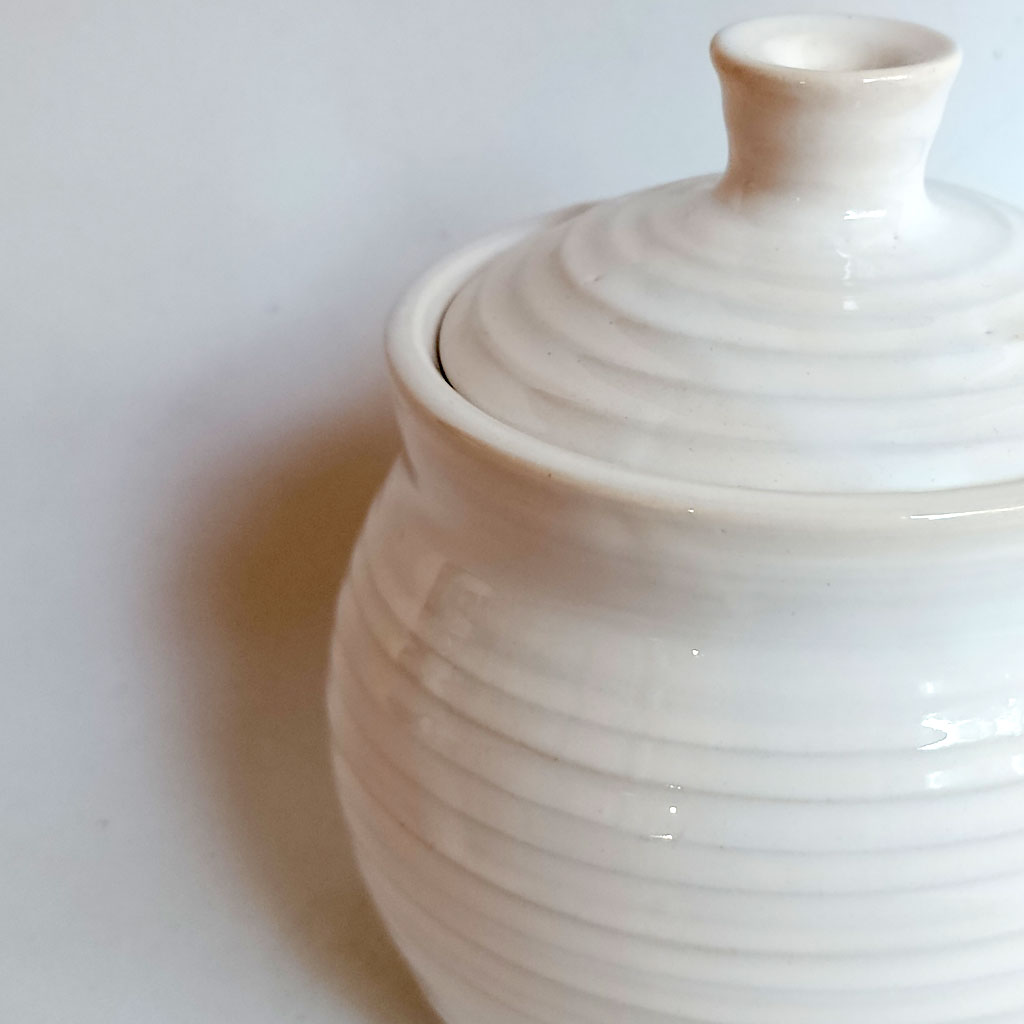 Tarro con tapa. Realizado al torno en gres y pintado a mano.