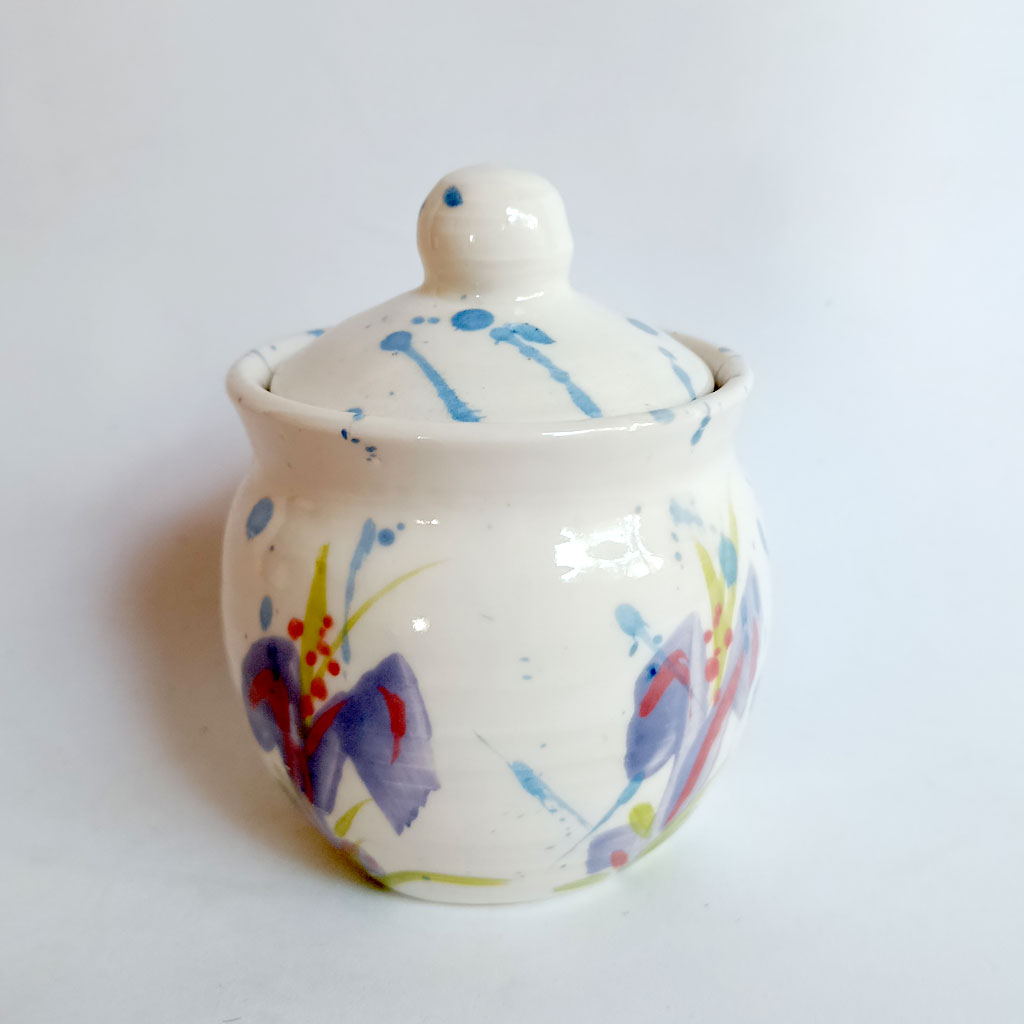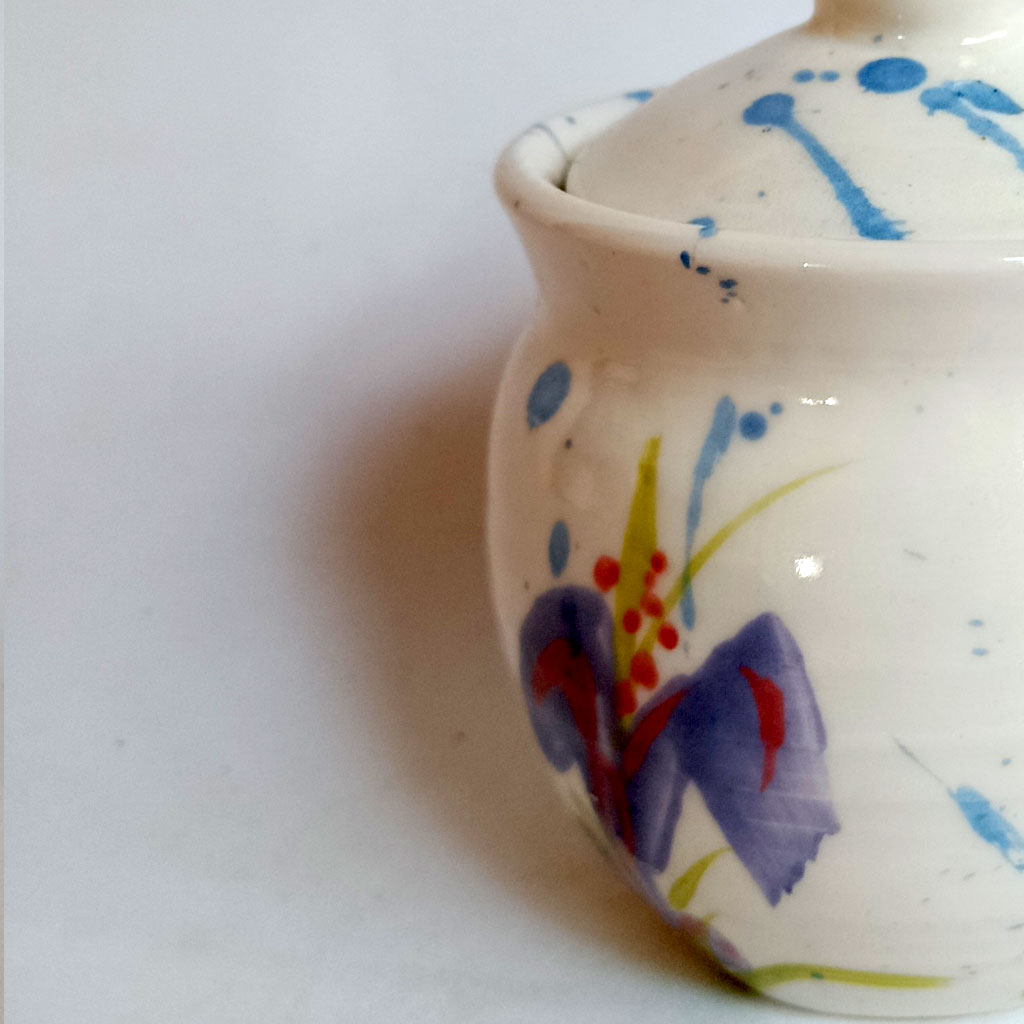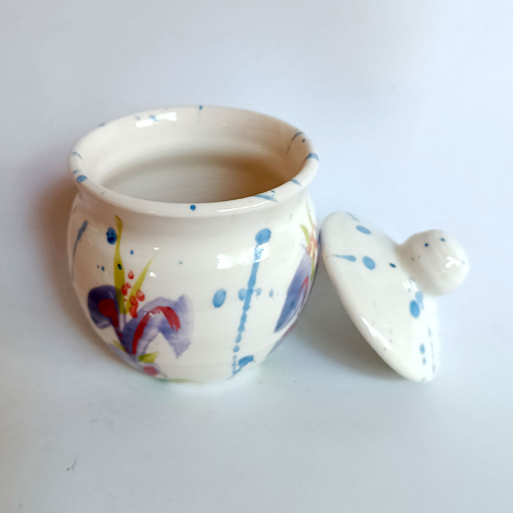 Tarro con tapa. Realizado al torno en gres y pintado a mano.