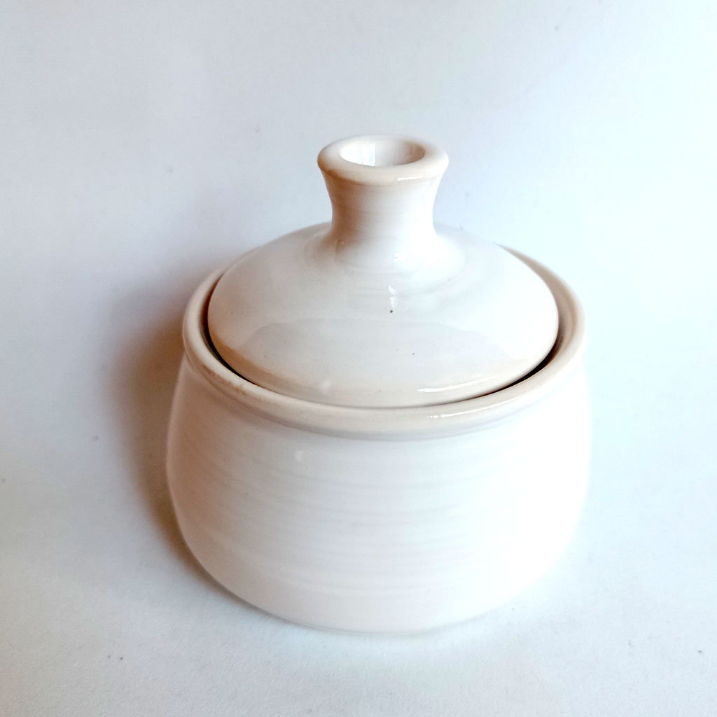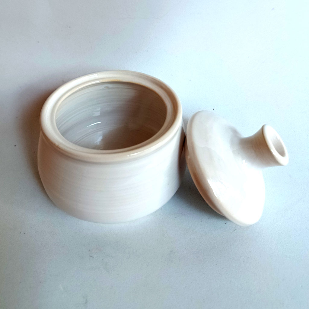 Tarro con tapa. Realizado al torno en gres y pintado a mano.