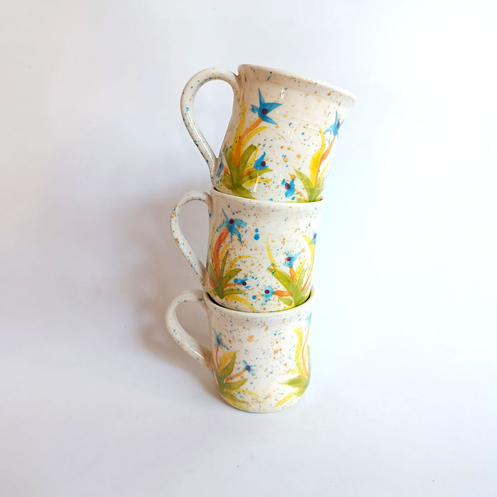 Taza. Realizadas al torno con loza y pintadas a mano.